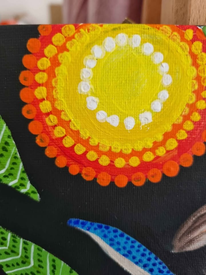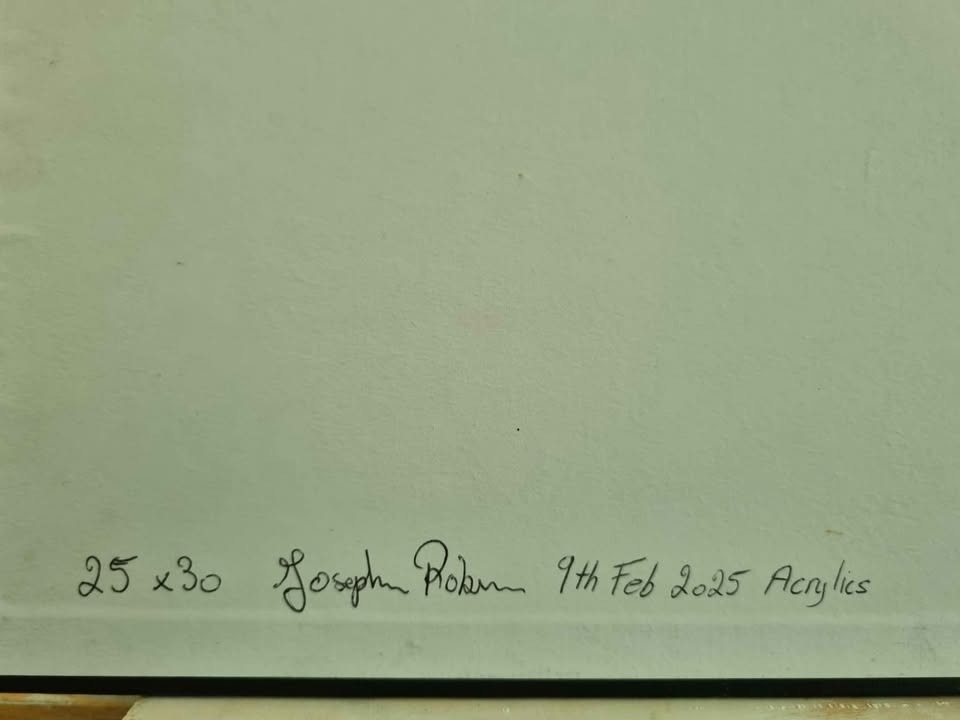 Acrylic on black canvas board , hand painted NOT print Josephine Robinson ready to hang , sealed with Atelier varnish framed ready to hang